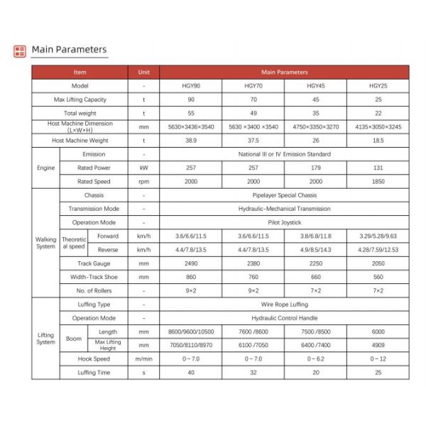 The SUHIGO Pipeline Layer product is a high-quality pipeline transportation equipment that is designed to meet the demands of various industries. The product is available in different models such as HGY25, HGY45, HGY70, and HGY90, each with unique features to suit different needs. The product is made in CHINA and has been certified by CE ISO, ensuring that it is safe, efficient, and reliable.